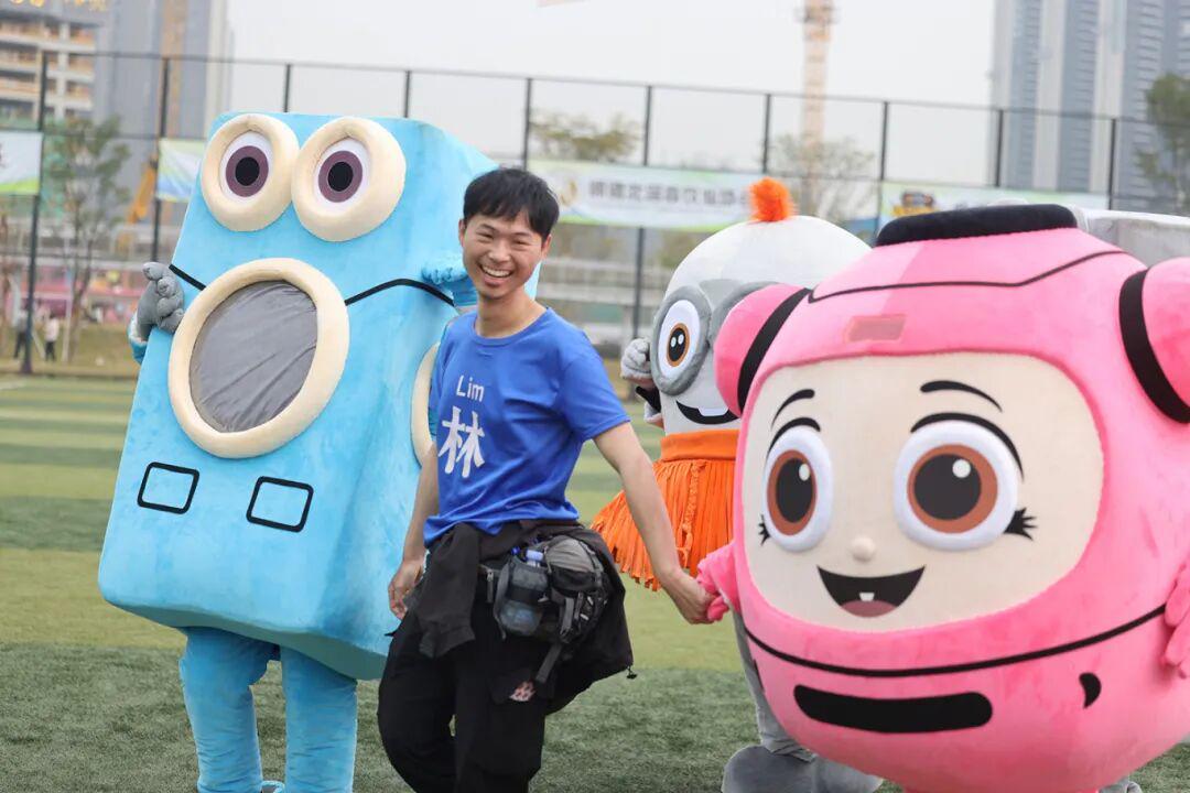 更为吸睛的是一群“特殊嘉宾”——造型可爱的家电人偶空降绿茵场。它们穿梭于人群之中,与小朋友们击掌、合影,憨态可掬的形象瞬间成为焦点,吸引众多家庭排队拍摄“人偶足球全家福”。这些人偶不仅为活动增添了萌趣,也巧妙呼应了北滘作为“中国家电之都”的产业特色,让本土制造以温暖亲切的方式贴近市民。
