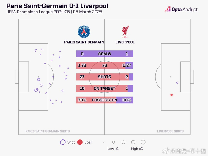 一年之前,利物浦以欧冠联赛轮第一的身份出战经过附加赛才跌跌撞撞晋级的巴黎圣日尔曼,结果首回合客场在射门数2比27的劣势下,居然取得1球小胜。